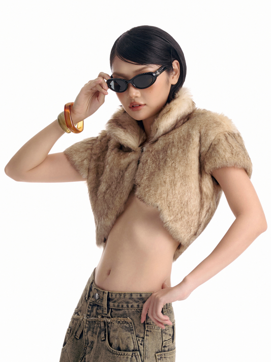 Sold outVendor:MelancholyChérie Fur Crop Jacket - Dusty Beige