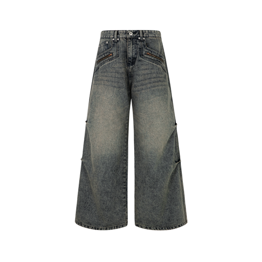 Loose Fit Vintage Wash Jeans - Faded Indigo