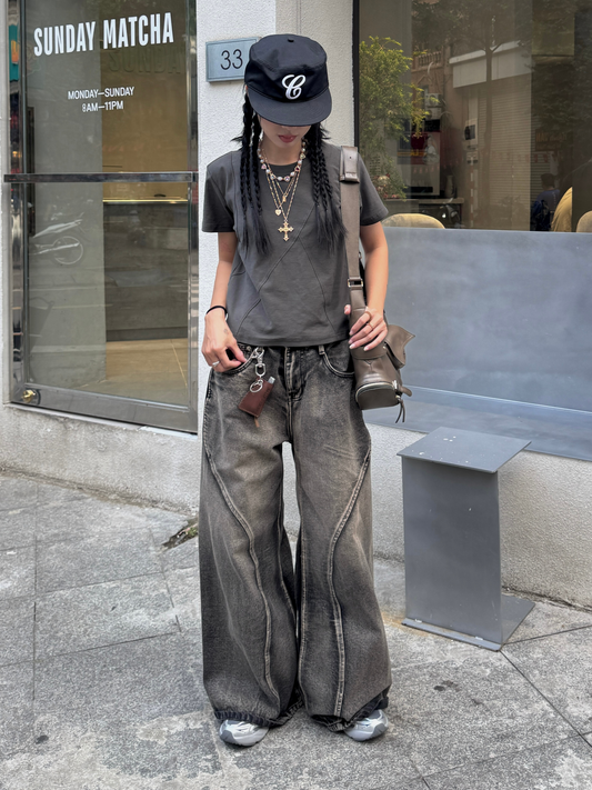 Boulder Washed Jeans - Grey