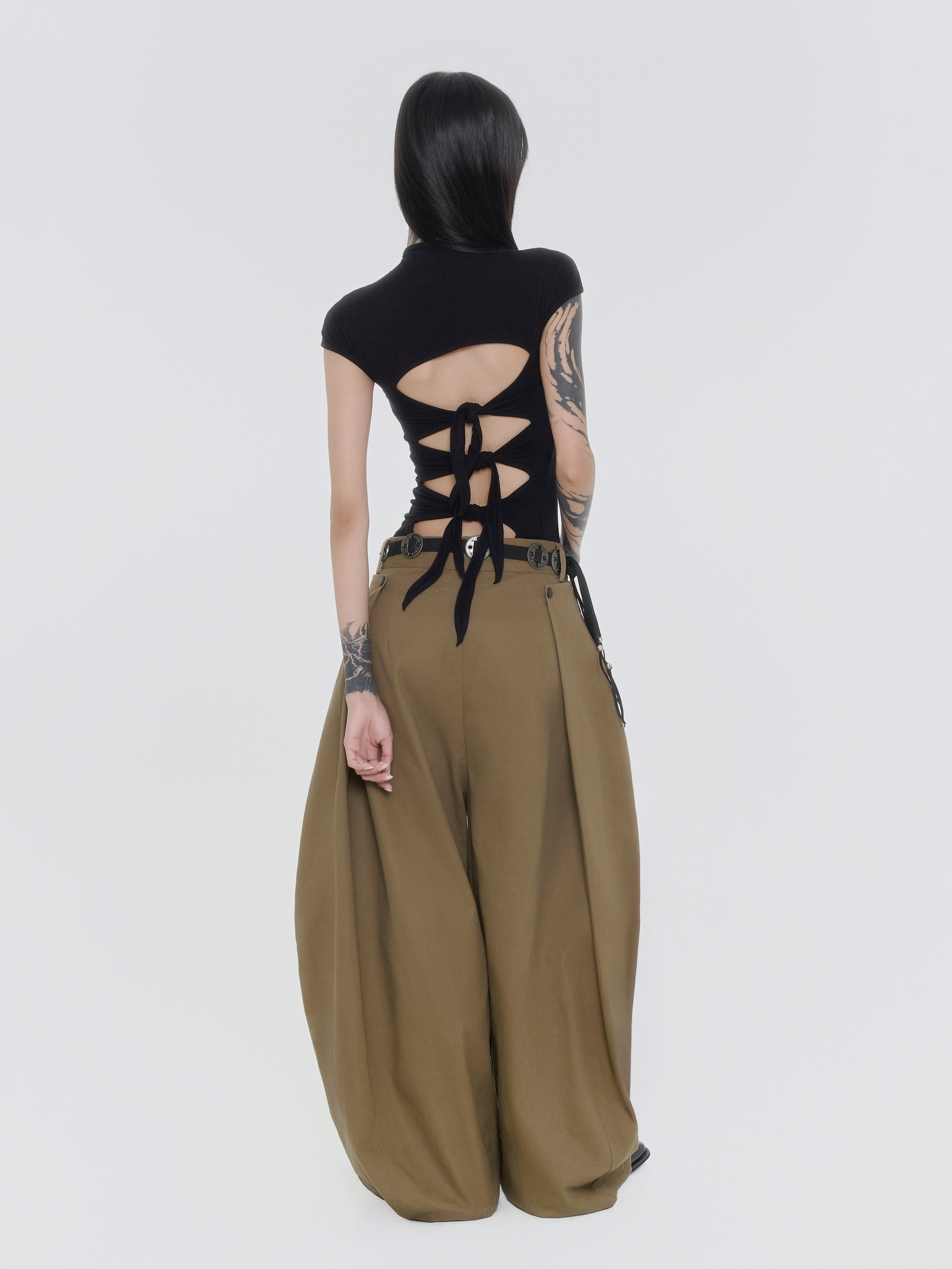 - Detailed Features: Ultra-wide leg, front and back pleating, stud detailing