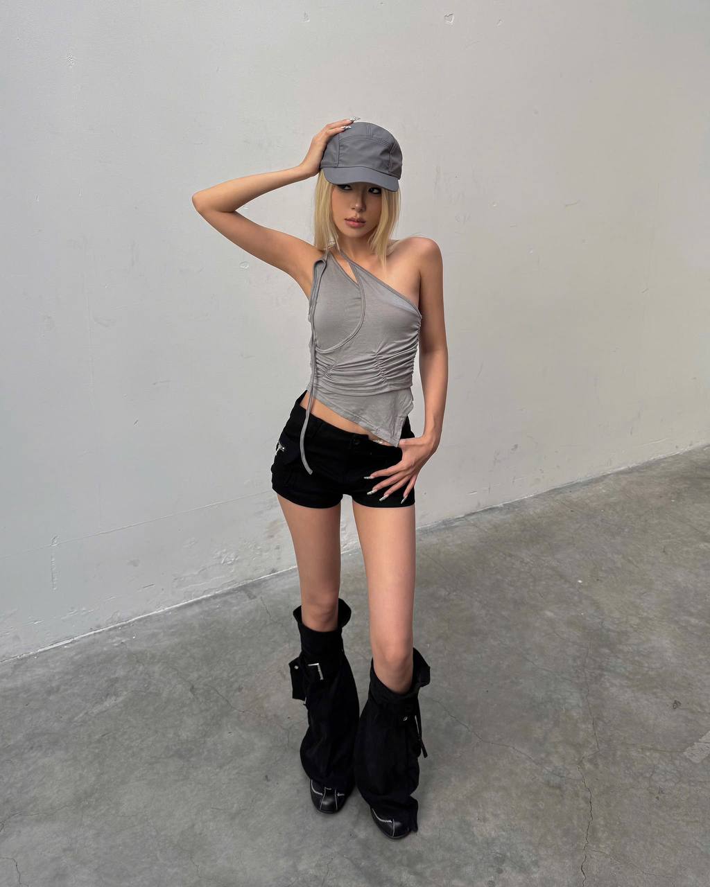 • Detail Features: Cropped, Ruched waist, Adjustable shoulder tie-strap