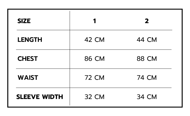 Size 1: Fit 40kg - 48kg / Chest below 86cm