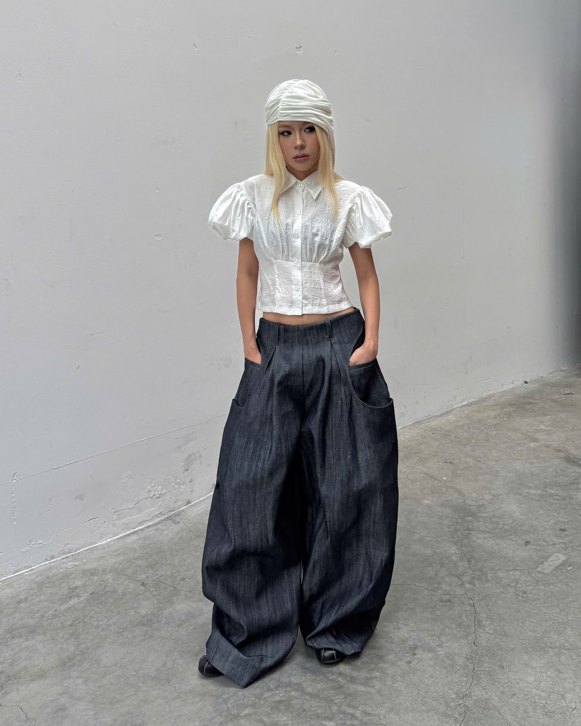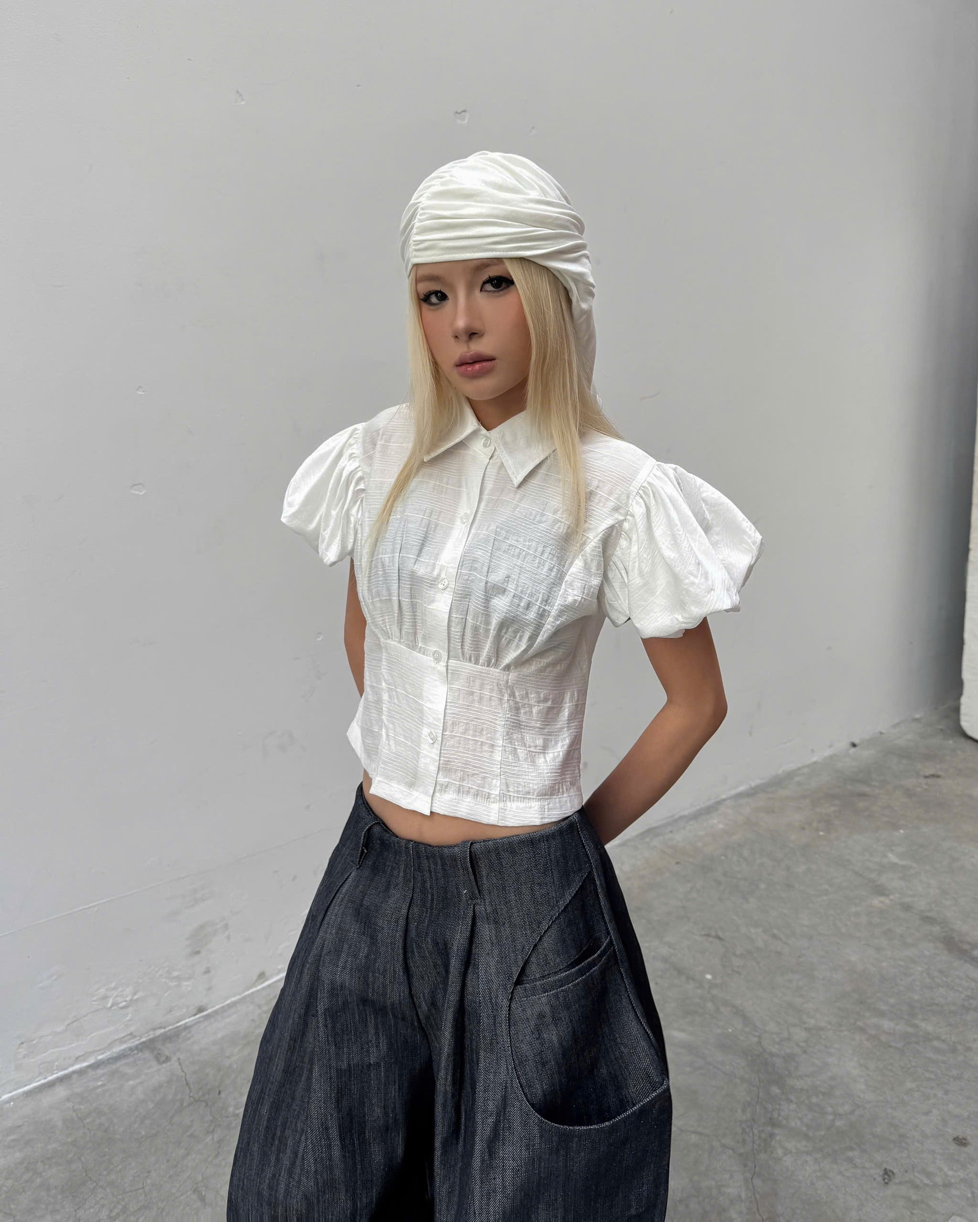 - Statement puff sleeves with front button closure